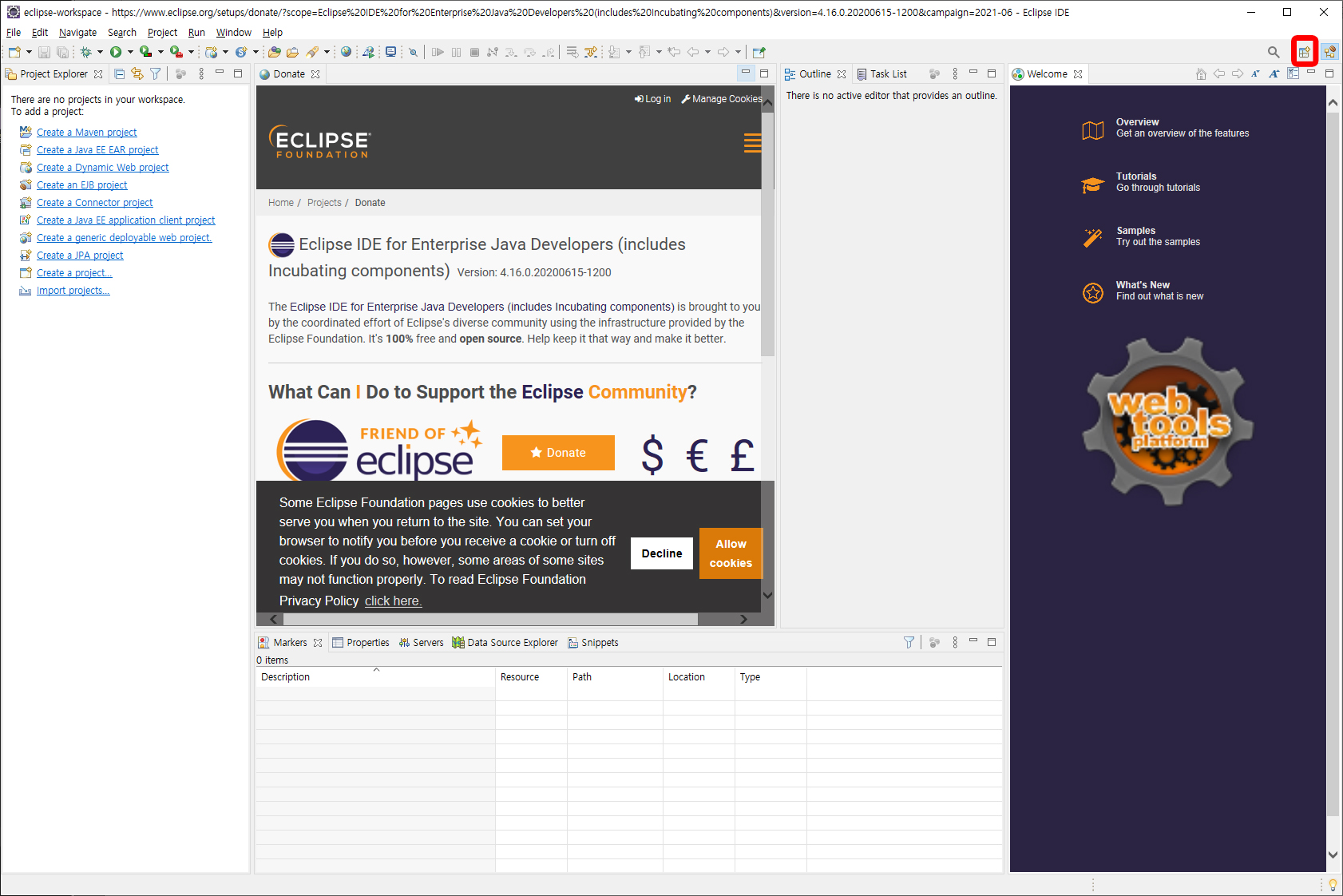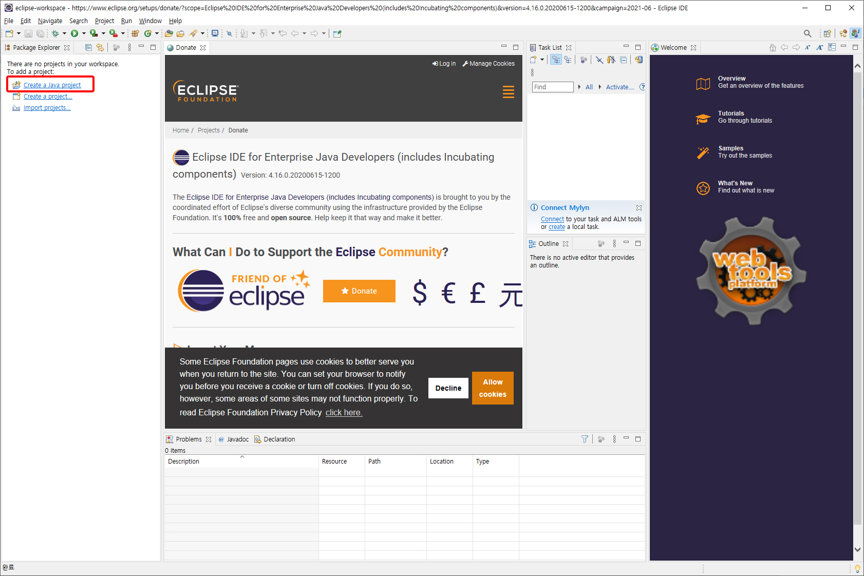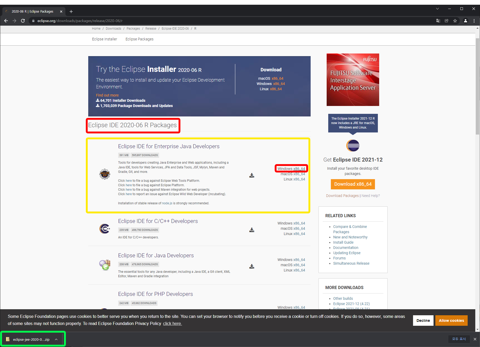 Java 8 버전이 지원되는 Eclipse 2020-06 (4.16) 버전을 설치하고자 한다.
