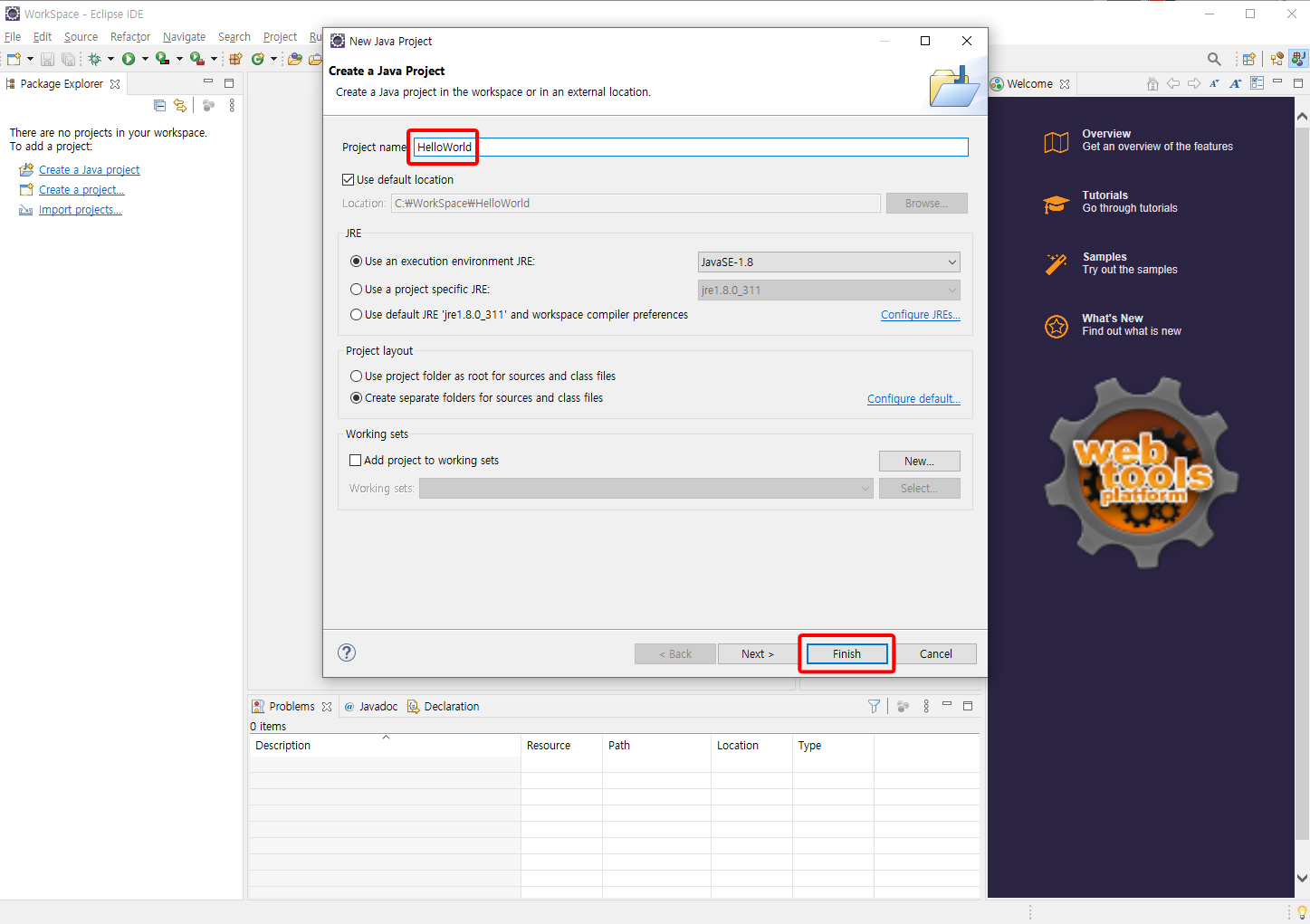 따로 설정할 게 없어서 Next가 아닌 Finish를 누른다.